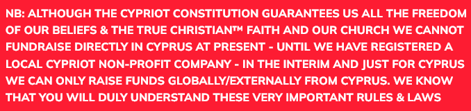 THE GLOBAL SPIRITUAL HQ OF THE END-TIME HOLY TRUE CHRISTIAN™ CHURCH & FAITH IS CURRENTLY EXILED IN CYPRUS AND BY GOD'S COMMAND IS SEEKING THE ANCIENT CHRISTIAN SANCTUARY & PROTECTION OF THE PATRIARCH GEORGIOS OF THE CHURCH OF CYPRUS - A FORMAL WRITTEN REQUEST WAS MADE BY US UNDER CHURCH & DIVINE SEAL DIRECTLY TO HIM ON THE 12th MARCH 2024 - BOTH WE AND OUR SOVEREIGN LORD GOD (YHWH) ARE AWAITING HIS TRUE & LOVING RESPONSE (Matthew 10 v9-15)