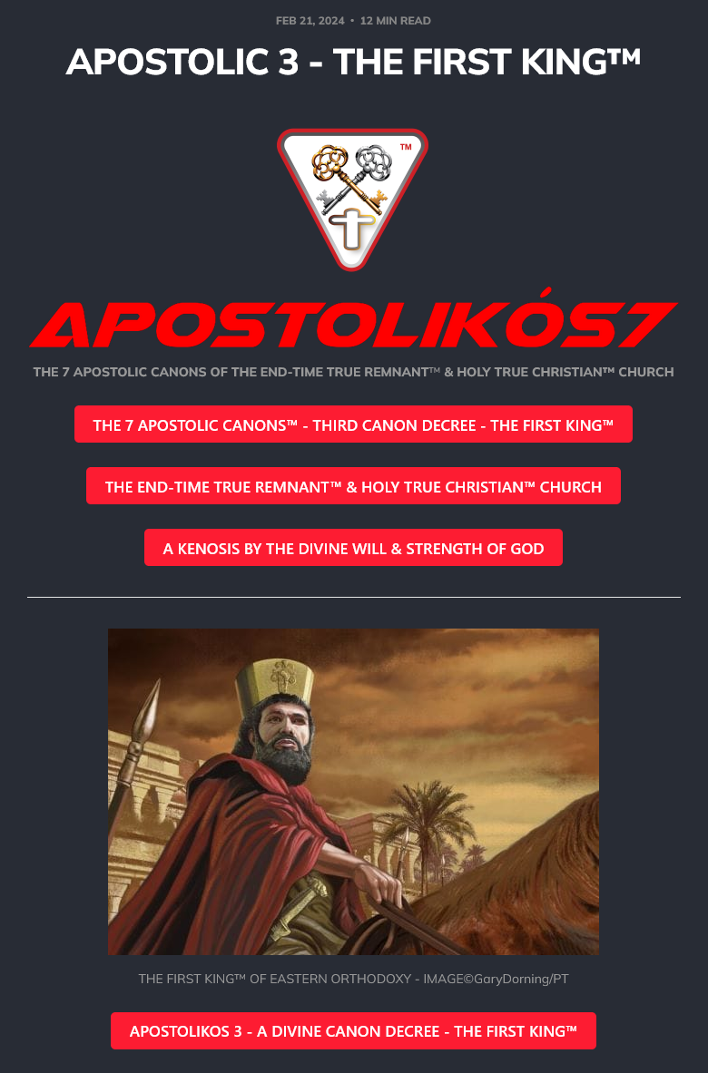 The Apostolic Patriarch™ Is An Ordained Priest And Is An End-Time Apostle Of Christ Jesus, Called By Our Sovereign Lord God & Our Saviour Christ Jesus AND Anointed By The Holy Spirit Before Witnesses To This God's Holy Service ...For Such A Time As This!