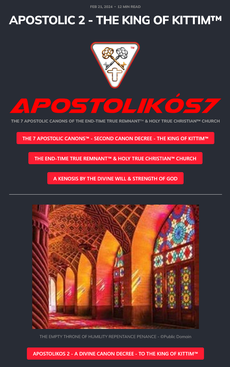 The Apostolic Patriarchate & Apostoloi Acts & Serves Across The Global See With The Divine Authority (Exousia) AND The Covenanted Authority of Our Sovereign Lord God!
